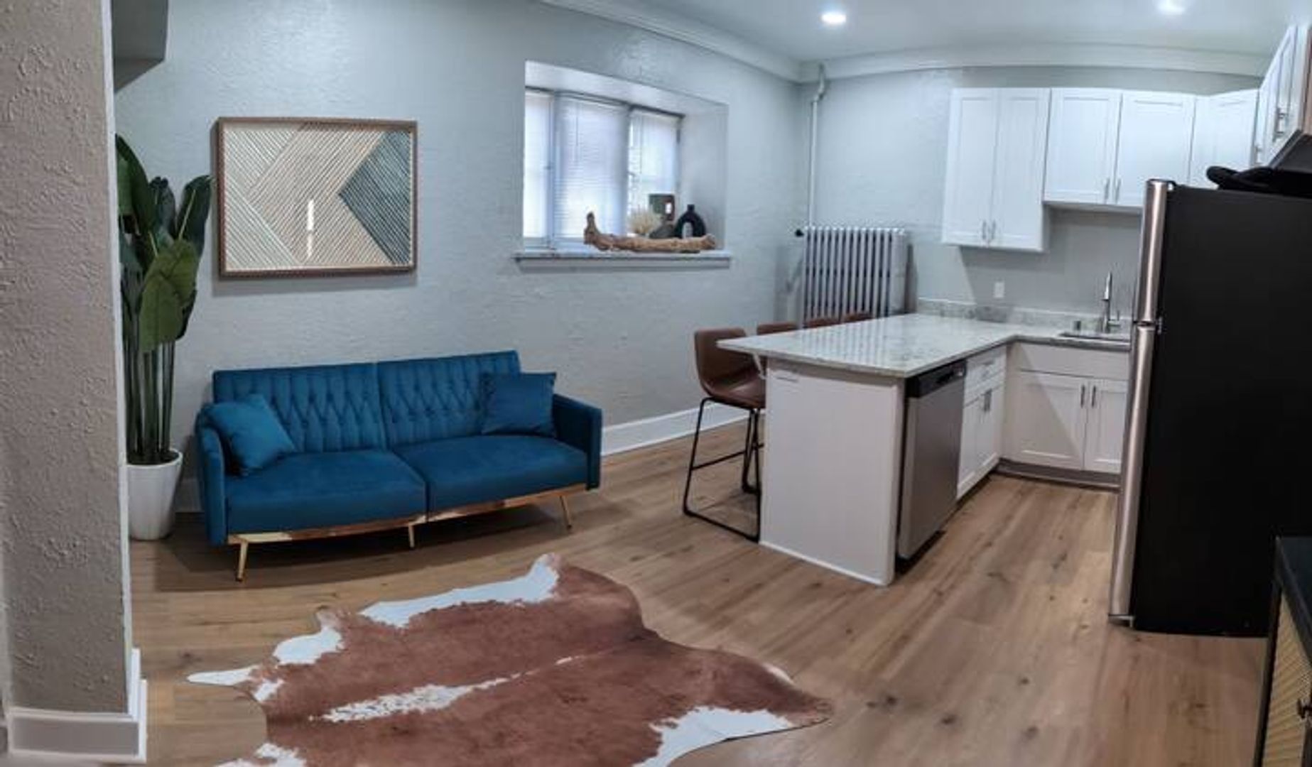 Welcome to the fully remodeled 1-bedroom apartment, conveniently located just a block off Brady Street in Milwaukee, WI. This stunning unit boasts a host of modern amenities, including stainless steel appliances, in-unit laundry, and granite countertops. The kitchen features new cabinets and a functional island with seating for three, perfect for casual dining or entertaining. The entire apartment has been freshly painted and fitted with all-new luxury vinyl plank floors, adding a touch of elegance to the space. In addition to the spacious bedroom, there's also a dedicated office space, making this apartment a perfect blend of comfort and functionality. Experience the best of Milwaukee living in this beautifully remodeled apartment.
