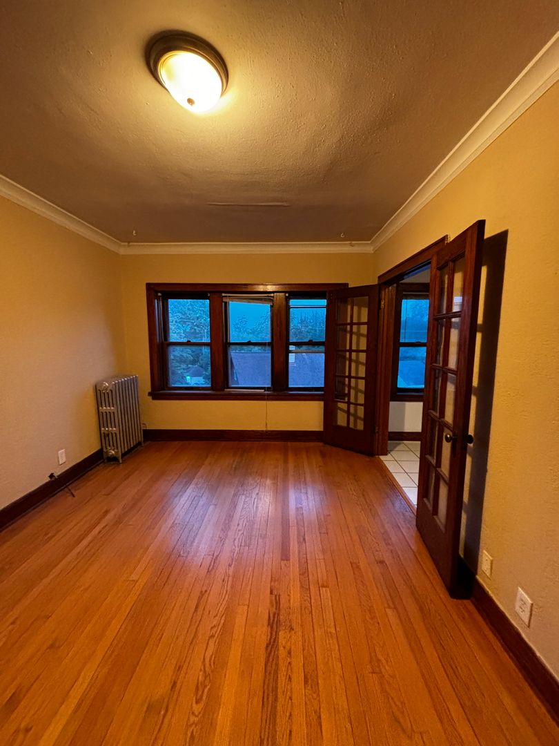 This beautifully updated one-bedroom apartment blends modern updates with timeless charm. The unit features gleaming hardwood floors throughout, adding warmth and character to the spacious living areas. Large, bright windows flood the home with natural light, creating an open and inviting atmosphere.